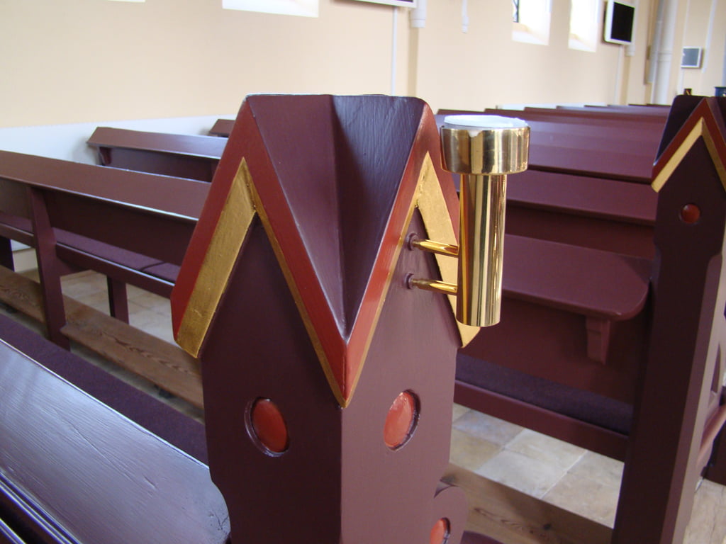 Rockidans moderne træmaling til paneler og døre overtager linoliemalingens plads på bænken.