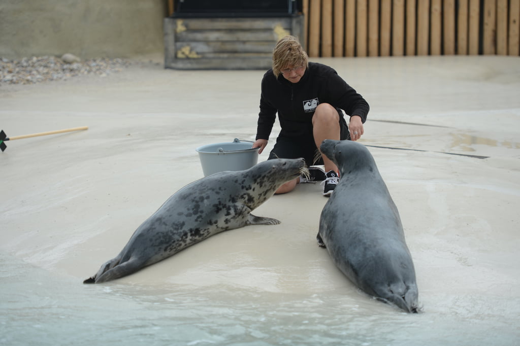Imiteret sandbanke udført med vandig epoxymaling giver autentiske rammer for sælerne i Esbjerg