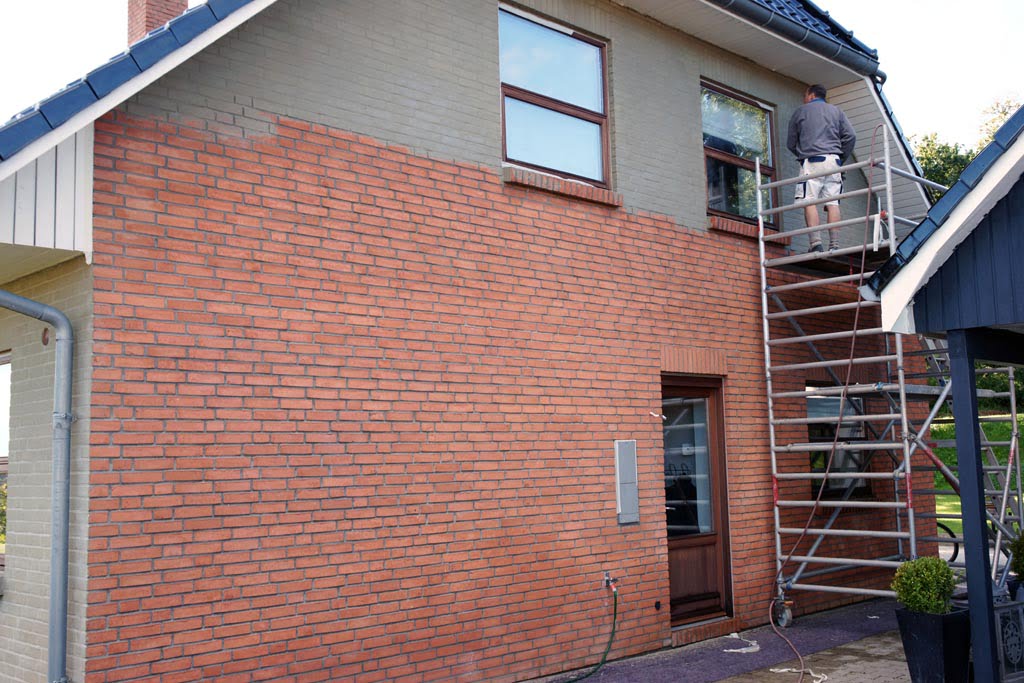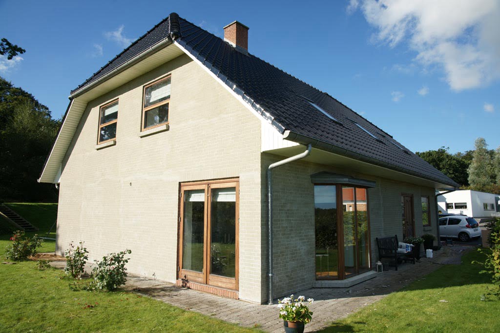 En blanding af betonrenoveringsmørtel tilsat dispersion giver en sejhård, kradsefast puds, der binder ubrydeligt til alt murværk – også de hårdtbrændte gule maskinsten. Denne styrke og vedhæftning betyder, at facaden ikke kun ser godt ud, men også beskytter huset effektivt mod elementerne.