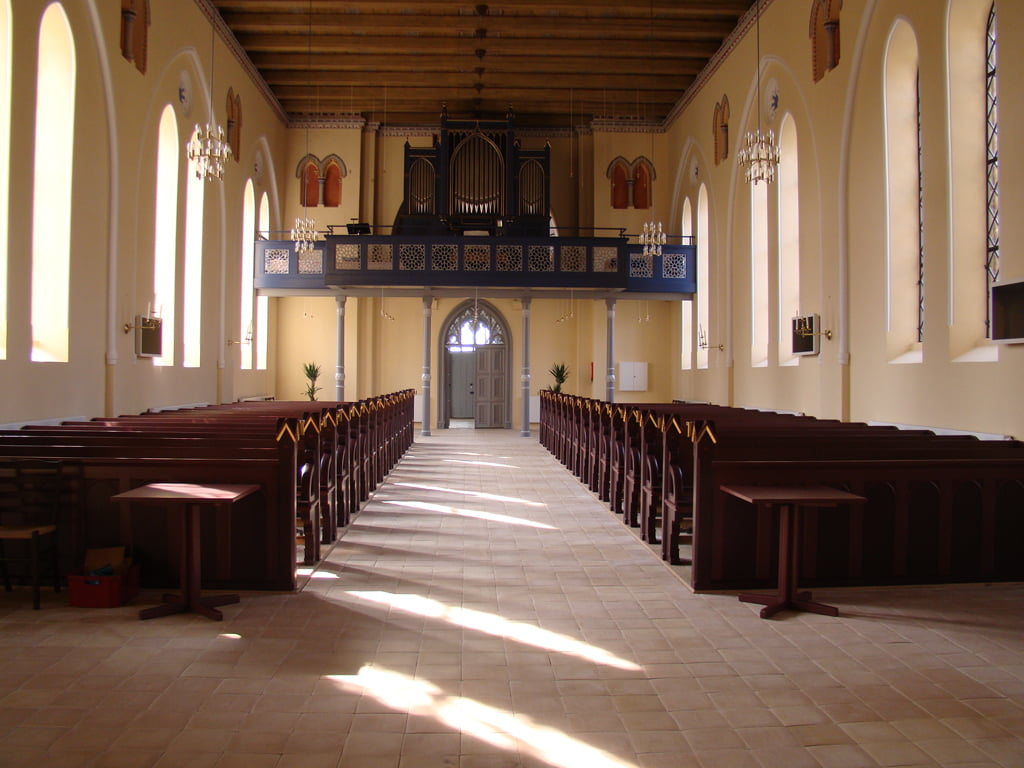 Når alle 32 nymalede kirkebænke og de supplerende stolepladser i sideskibene er besat, kan den store korskirke rumme hele 700 kirkegængere.