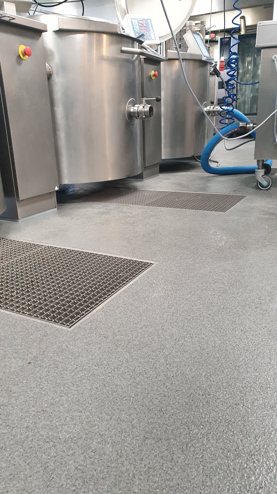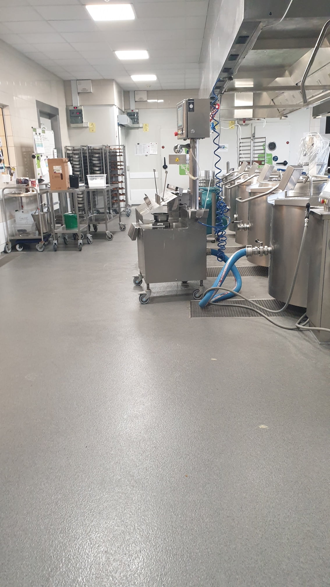Forbedret Hygiejne En af de største fordele ved den nye gulvbehandling er den forbedrede hygiejne. Den glatte og tætte overflade, som NM 400 Elite skaber, gør det nemt at rengøre og desinficere gulvet, hvilket er afgørende i et storkøkken. Dette hjælper med at opretholde et rent og sikkert arbejdsmiljø.