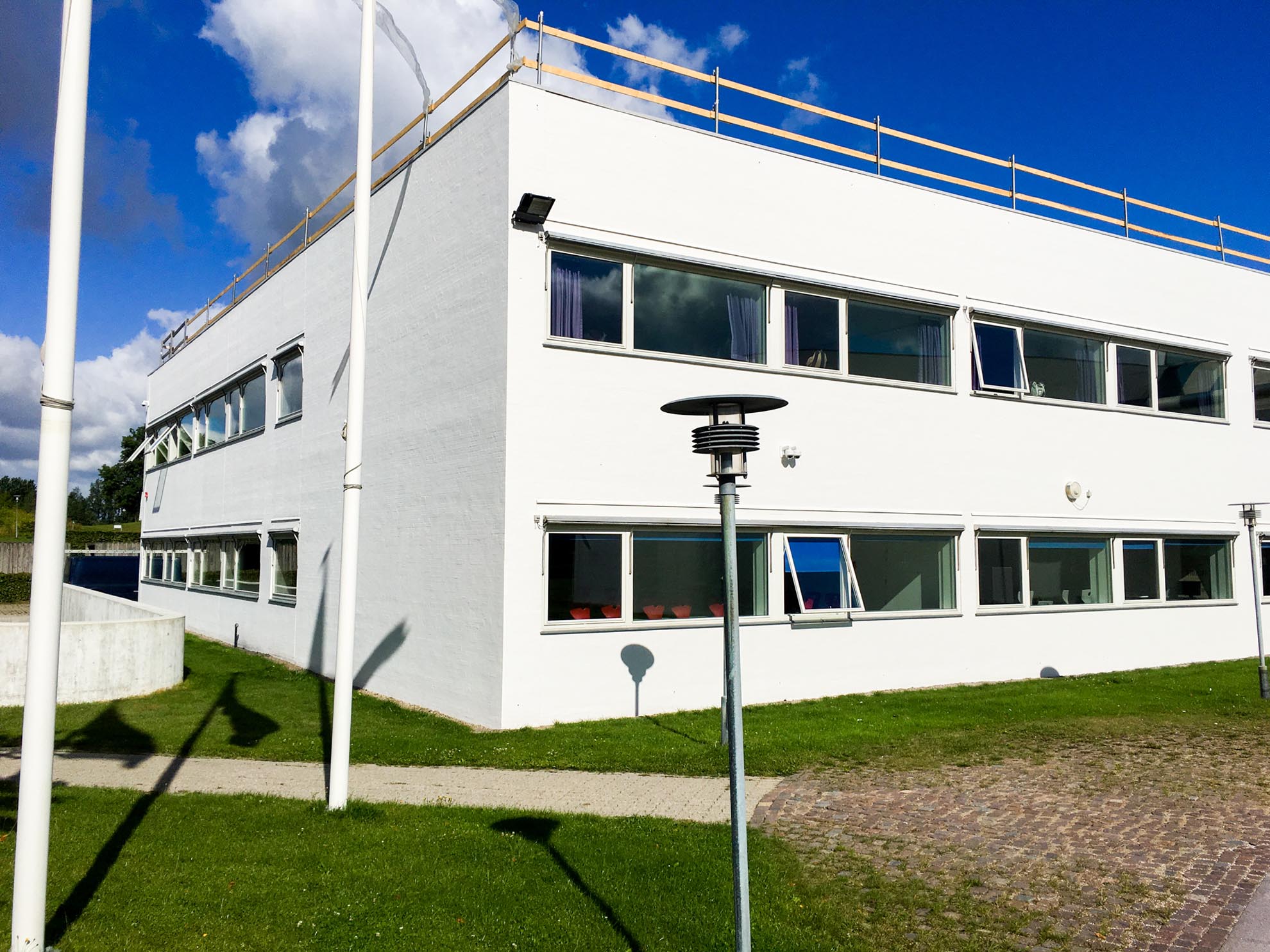 I 2016 blev facaden på Høje Taastrup Gymnasium, Frøgård Allé 2, 2630 Taastrup, professionelt malet for at opnå et frisk, ensartet og holdbart udtryk. Projektet blev udført af Jørgen Holm A/S, som valgte en grundig behandlingsopbygning med højkvalitetsprodukter fra Dinova for at sikre optimal vedhæftning, beskyttelse og lang levetid.