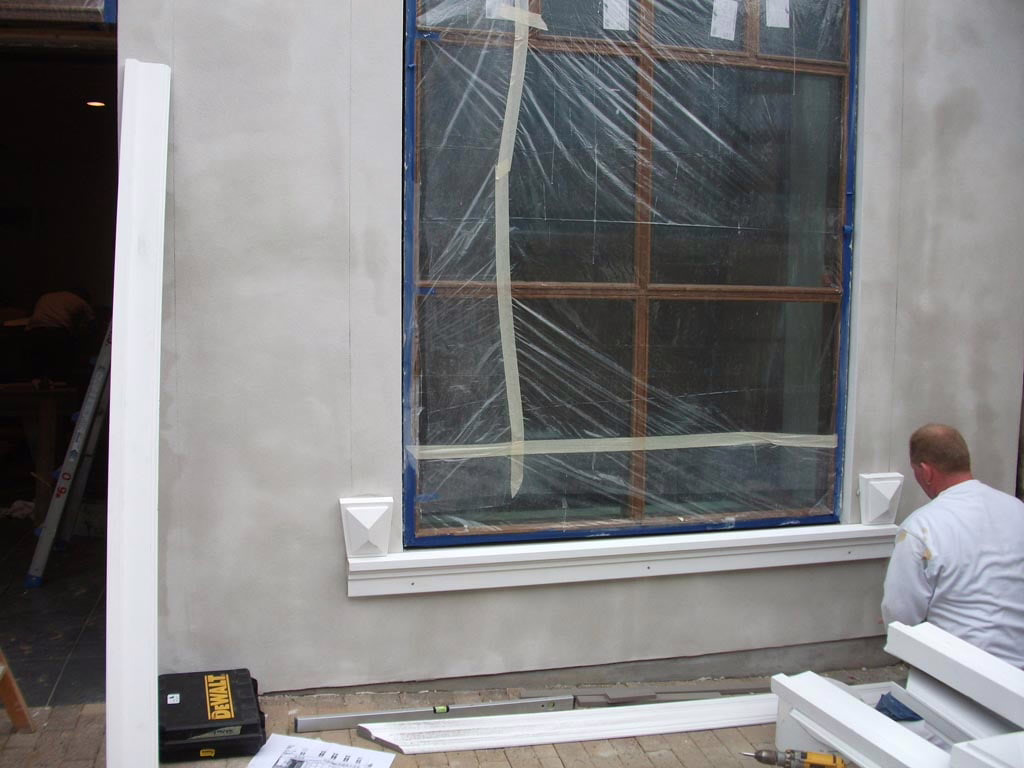 Montering af færdige facadeprofiler for at skabe en dekorativ og sammenhængende afslutning.
